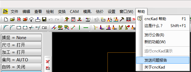此报告的作用是当用户在使用软件的过程中出现了错误或者问题无法自行解决时就可以生成这个报告文件发送给CNCKAD的服务人员。此报告会包含问题发生时使用的机器,零件,排版,加载的模具等相关信息,这样可以很方便让软件开发人员重现出现问题的场景,更快速的为客户解决问题。