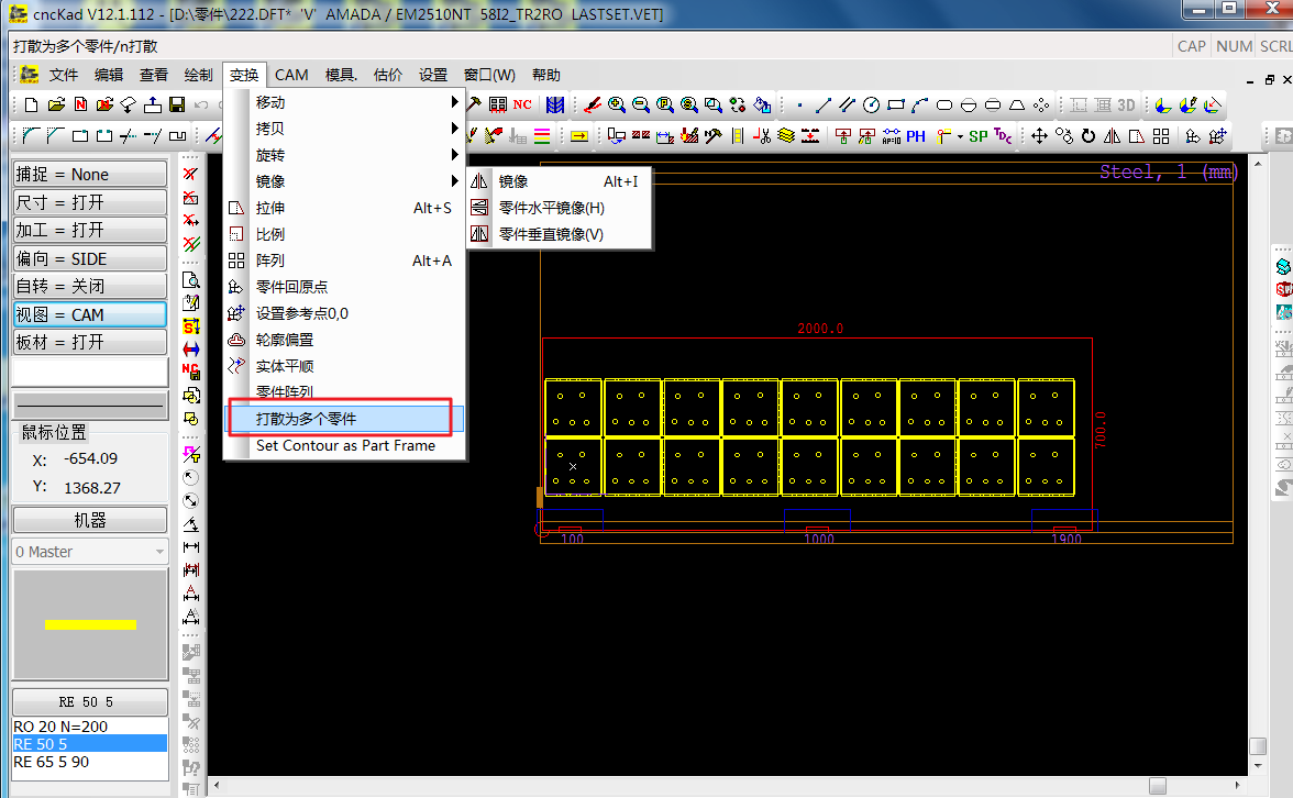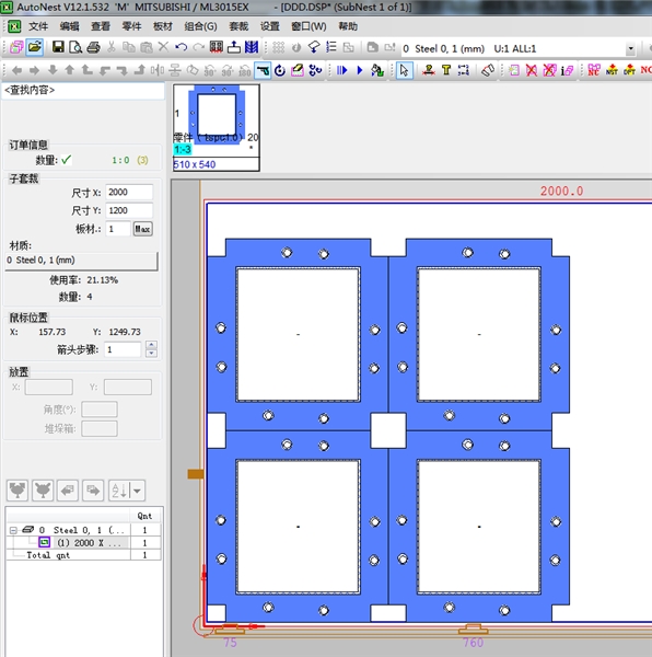 在我们生产当中,经常会一张板材上阵列一个零件加工很多个,正常加工是按照每把模具针对于整板冲压,如果图纸或模具加载错误就会导致批量报废。为了避免批量报废我们可以先加工出来一个样例零件检验一下,如果合格后再加工剩下的部分。